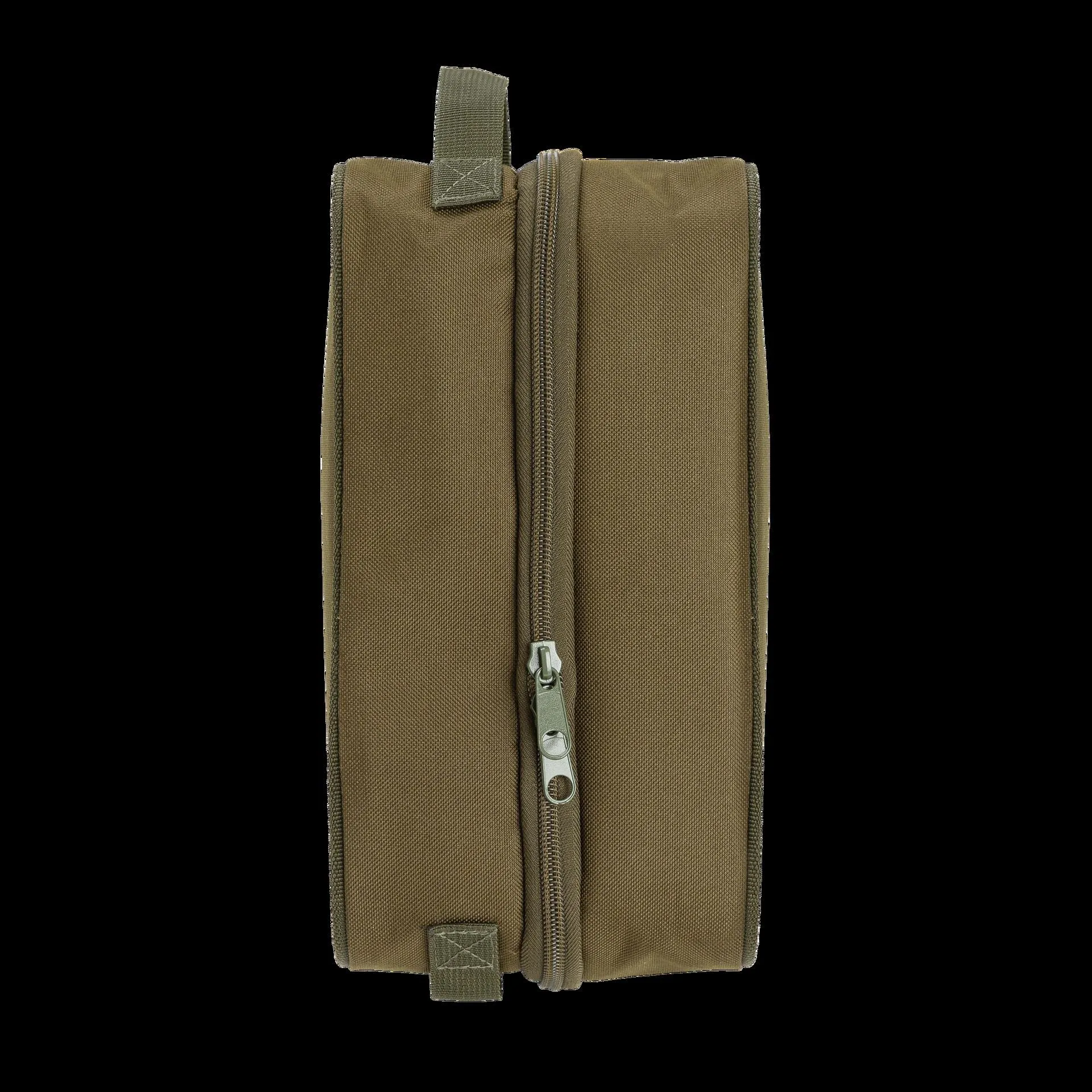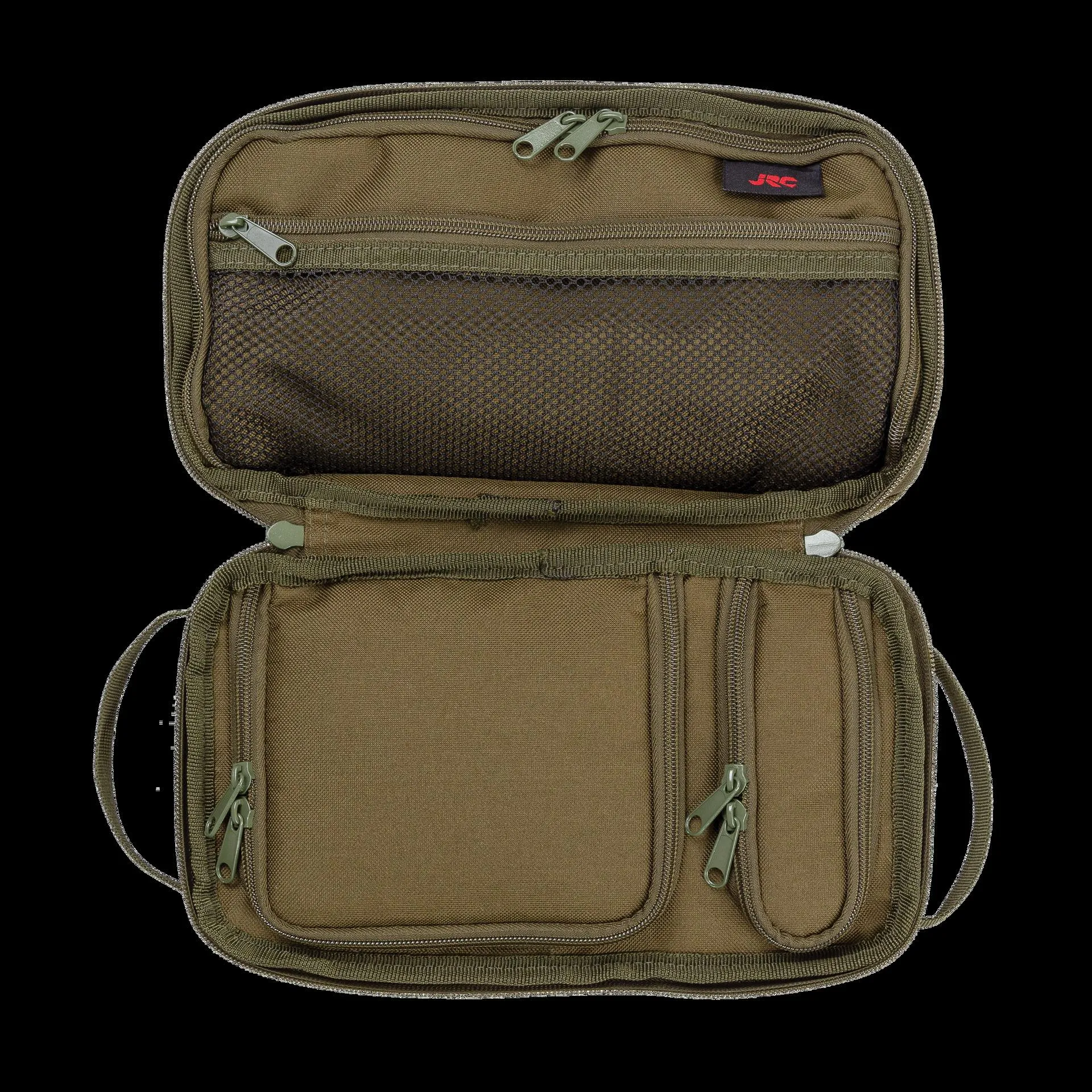- Hard wearing and water resistant 500D green polyester construction • Fits all JRC Carryalls and Backpacks perfectly • Double zipped outer and inner acces • Main compartment supplied with optional divider • Mesh pouch on main compartment for additonal storage • One medium sized compartment plus a integrated lead pouch lined with 600d pvc • Two carry straps on each side • Dimensions: 28 x 15 x 15 cm